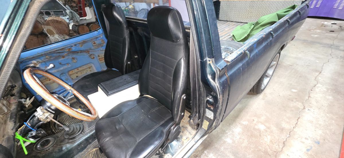 So I had an idea and with drakers help i managed to get the koolrest to the house. Already had the seats, bought them at least 11 years ago for little miss. But i mean, this is the bench from little miss pulled that out and set it to the side and slapped in the s30 seats and the koolrest little tight on the koolrest but there is room for adjustment and at this point no gap in the middle to cause an abyss drivers side(first) shows room to the sill and passenger side shows room to door. Don't currently have arm rests for the door so.... Will figure that out later 🤣 along with mounting them down May not end up being a long term solution for this truck because I am a little too tall for this setup but should be able to drive it with the seats against the back wall1 point