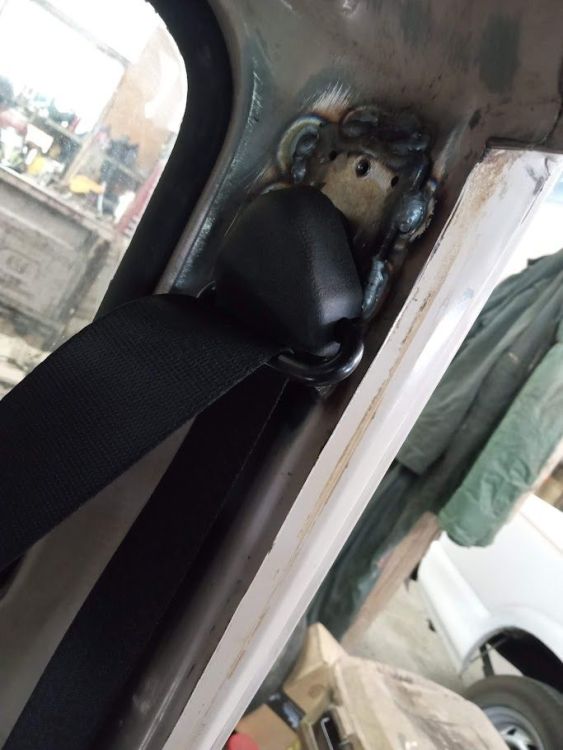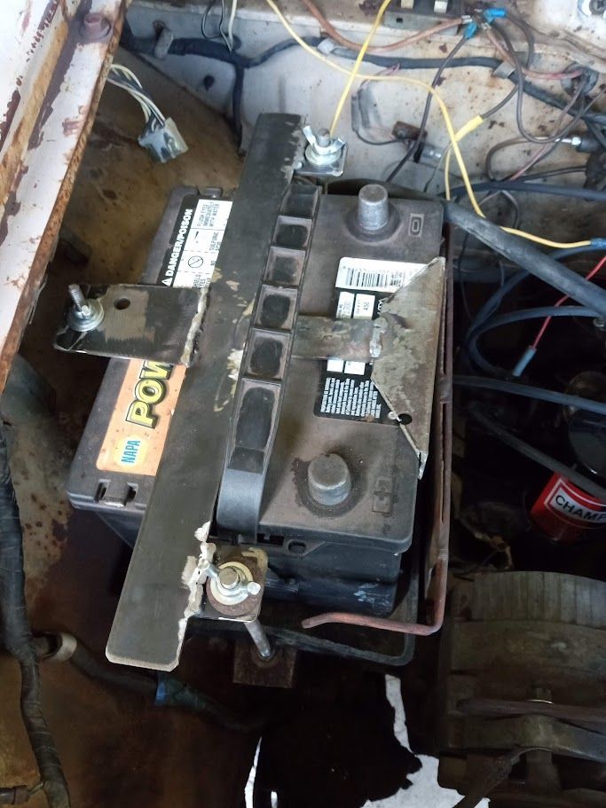 Still steady as she goes...fluids are in the radiator and clutch cylinder and mater cylinder....trying to get the fluids to flow to the correct areas and have nothing dripping on the floor at the end of the day...that will take some time for sure... My favorite thing to do in the world is weld and cut old rusty metal... I cobbled up this little dandy to hold the battery under the hood Bought some more parts from Speedway motors...a pair of seat belt mounts...had to modify them to work in the small confines of the Datsun cab... after a day of smoking the crack pipe and a lot of chin scratching too... I vaguely remember I had a three pout harness in one of my old Datsun...I think it was the 1972 and the 1974... How about a brand new (to me) package tray...and some un-obtainium too... Almost looks like it belongs on the old heap... I have gotten most of the old truck cab smell out of it too...I think the bench is not going back in the cab... Rocker panels showed up this week so guess what it up next???...doing the Rocker Panel Shuffle we are...1 point
