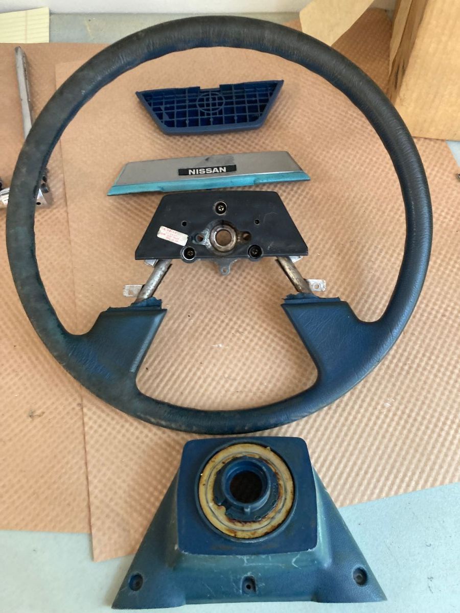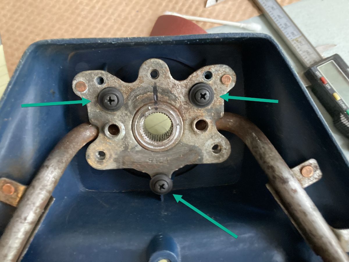 A buddy was at the wrecking yard and grabbed the screws and 2 springs from a steering wheel on a truck that was there. I gather that the springs make a connection between the horn button and the donut-shaped contact on the back of the wheel. When I screwed in the screws/springs, one spring got stuck in the hole and the other spring got all mangled.