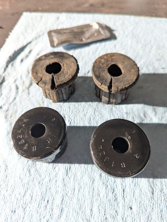 Good deal Doug! Thanks for the washer tip, I'll have to give it a shot. These came with grease so I'm hoping that keeps things from binding up. Luckily I had a bunch of NOS rubber bushings for the rear so now the whole setup is almost new, minus the front uppers which were in suspiciously good shape. Went for a drive on them today and it feels like a different car. The parking brake used to pull the axle forward a little and any roughness in the road on a turn would be a roll of the dice for traction... -