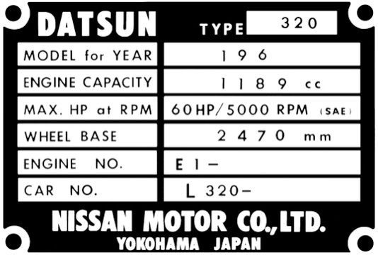 KFunk740 Posted February 6, 2016 Report Share Posted February 6, 2016 From Ted Heaton on Nicoclub forum: Quick Guide to reading early Datsun Parts NumbersThe Datsun Part number is very useful after you learn to read it.Some of the early parts manuals contained an elaborate explanation.Here it is in brief. This number scheme was used up to the late 60s.and is very helpful for the older Datsuns we have.The Part # is 10 digits, SSFFF-TTTDD, with these odd titles.SS is called Section.FFF is called Proper NO. TTT is called Part Type.DD is called Distinction.SS is the number for a group of parts. For example #21 for the cooling system.FFF is the number for a collection of similar parts within the Section. For example #400 is for Radiator parts within Section 21.TTT is the number that identifies the vehicle that this part originated with. For example #087 is for the 320 truck. If you have a 320 partwith a Type other than #087 it means the part is from another Datsun but used on the 320.For example #094 is for the Bluebird 312 Sedan which shares parts with the 320 truck.This number is most useful for identifying interchangeable parts.DD is the number for further refinement of the part to designate changes, kits etcbut I have never seen a table that relates the numbers to a description.The TTT number and model of Datsun it identifies is included in all parts manuals.The SS and FFF numbers are in most all of the parts manuals.The explanation of all this is only in some of the early manuals.Here is how the part number for the 320 round front signal lens/chrome ring reads.26121-09401.26 is "electric section #5"121 is "Lamps #1 Outside"094 is the number for the 62/63 Bluebird 312 sedan.01 indicates a "Parallel, changed or service" part, but which is not defined. 2 Quote Link to comment