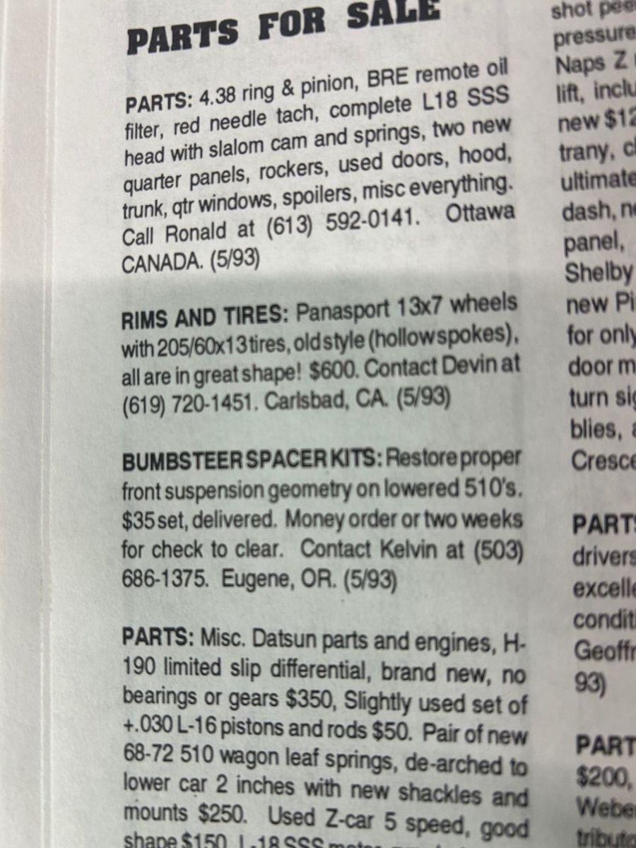 Dguy210 Posted February 28 Author Report Share Posted February 28 5 hours ago, banzai510(hainz) said: I got these trying to get rid of. 500 bucks local pick up needs new rear tire minimum Covington to Wa. 15x7 +25mm for stock 510 strut. NOT 280ZX strut(rim will hit strut) That's a good price, however I have 280zx struts on pretty much everything I own :) Quote Link to comment