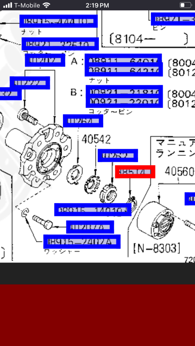 Sissyneck1 Posted July 23 Report Share Posted July 23 Hey everyone, Im in the process of replacing both CV’s on my truck, so far I’ve only run into one hiccup: the small c ring at the end of the CV axle that stops it from sliding out of the spindle needs to be replaced and I’m not sure how to size it. Is there a rule of thumb for sizing or do I just have to measure the channel it goes in? There 9 different sizes listed on Nissanpartsdeal.com listed under lookup code 40603: https://www.nissanpartsdeal.com/parts-list/1985-nissan-720_pickup/axle_suspension/front_axle.html?filter=(1%3DK%2FCAB%3B2%3DZ24%3B3%3DDX%3B4%3DF5%3B5%3DLONG%3B6%3D4WD%3B7%3DFED)&diagram=400_B02 What does the T=1.1 etc denote? Anyone dealt with this before? the photo below shows a diagram of nengun.com, an importer from Japan. Quote Link to comment