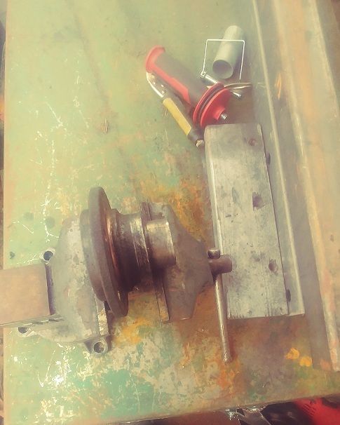 frankendat Posted March 4 Report Share Posted March 4 Unexpected joys from the "approved fix" of graveling my back yard. (The city forced a "fix" after it was discovered I parked a Datsun back there. (long story on another thread). The unexpected joy is my engine hoist will no longer traverse around in the back. The engine hoist required modification to travel on gravel. As always, what makes a complicated project is serious shortage of cash. Considered a straight steel pipe for an axle, but settled on 2 26mm 10.9 grade bolts, (expensive) 2 Honda wheel hubs (cheap) 1 piece of 1 inch thick steel plate (salvage) Steel was bored for the 26mm bolt and for 3/8 flange bolts 2 grade 8 (expensive) and 2 grade 5 (on hand) Bolts, steel and nuts The wheel hub 26mm nut and 9 thin washers necessary for the nut to stick up far enough to be tightened. 1 Quote Link to comment