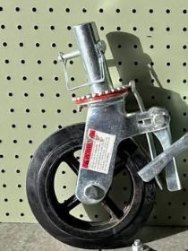 frankendat Posted Friday at 02:52 AM Author Report Share Posted Friday at 02:52 AM (edited) I am not comfortable with the amount spent on this hoist. I like to feel good about doing much for little, but the cost of having steel machined bit me in the ass. It was near double what I anticipated and I foolishly commissioned the work without concreting the price. Rookie mistake and it stung. Today I scored the casters I wanted for the price I wanted. They are 8in swivel casters for scaffolds rated for 1000lbs each with solid rubber tires. The rear pneumatic tractor tires are rated at 800lbs each, wheel confidence is high. To maintain a level ride height. I have 2x2 .188 wall steel tube to bolt and weld (belt and suspenders) to the top of the lower extending arms of the hoist. 18in off 2x2 will be mounted 9 inches on the lower extending arm and 9 in off the front. Here is where I need assistance from the Great Ratsun Brain Trust Best method for 1-1/4 hole in .188 in wall square steel tube? Welder? Torch? Bite the bullet and buy a 1-1/4 bit for my 1/2 drill? More information than needed is included below: The top of the caster is a solid round metal protrusion which slips into a scaffolding tube. The solid round metal piece is 1-1/4 inches in diameter. To accomplish my plan a 1-1/4 hole will need to be made through my newly acquired 2x2 square steel tube and a small piece of 1-1/4 I.D. round tube will need to be welded around the hole. By doing this the square steel tube will not interfere with either the rotation of the caster or operation of the brake. The pin on the solid round metal piece is big enough to go through the 2x2 tube. (See my next post for further information) Edited Friday at 03:16 AM by frankendat Quote Link to comment