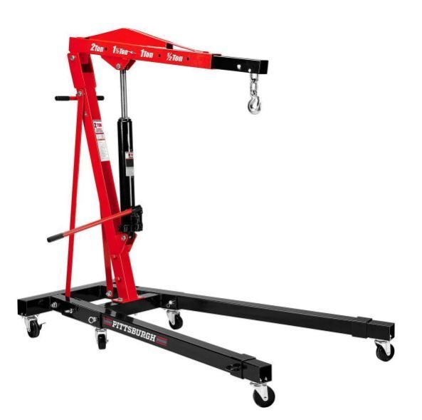 frankendat Posted March 4 Author Report Share Posted March 4 This is the hoist, but mine is gray. The picture shows the mounting points for the casters. A fellow on Youtube built one with lawn tractor tires. He put two at the back, like mine and mounted to the very front, by drilling holes through the sides and mounting wheel hubs. Doing this means the hoist can only travel straight forward and straight back. I was spitballing the shorter wheelbase with lawn tractor tires, because I thought it would be easier to turn. The simplest and cheapest would be to leave the remaining factory casters alone. The middle casters will not touch the ground and the hopefully the end casters will not dig to much in the gravel. Quote Link to comment